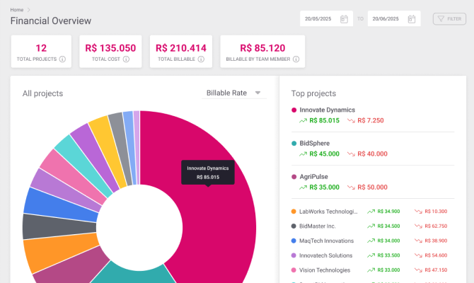 Teamlapse revela o investimento real em cada projeto, cliente e atividade.
